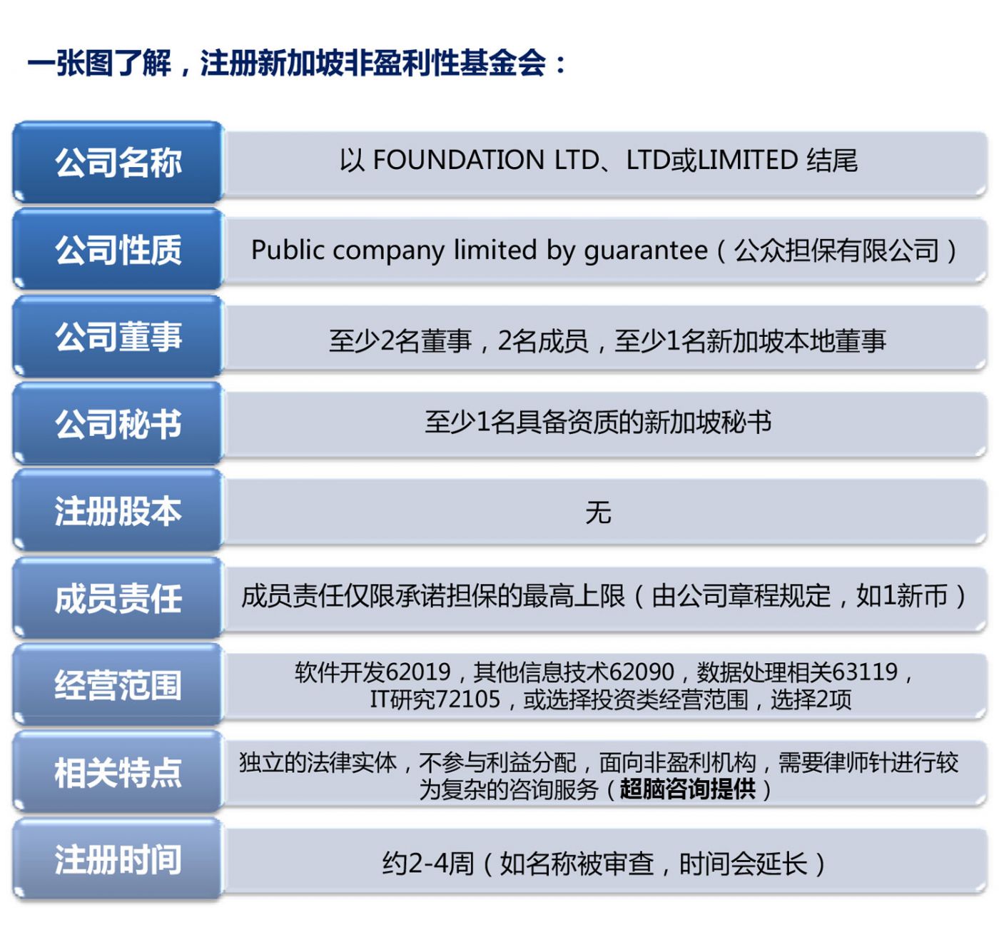 注册新加坡公众担保有限公司(CLG)成立非盈利性基金会,是您开展区块链等相关项目的首选。超脑咨询为您总结相关要点如下: